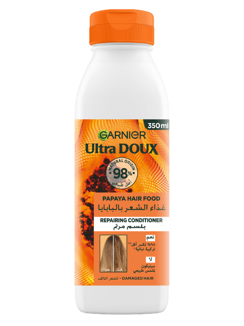 Plongez dans le revitalisant alimentaire pour cheveux à la papaye Garnier Ultimate Blendspour aider à réparer les cheveux abîmés, mélangé avec de la papaye et de la noix de coco.Sa texture ultra-fondante et légère pénètre instantanément pour nourrir, Appliquer etrincer rapidement. Pour des cheveux intensément nourris, d’apparence saine, comme réparés.Pour une alimentation plus intense, optez pour notre masque multi-usage 3-en-1 Papaya HairFood ! Trois façons d’en profiter : Shampooing, après-shampooing, masque.
